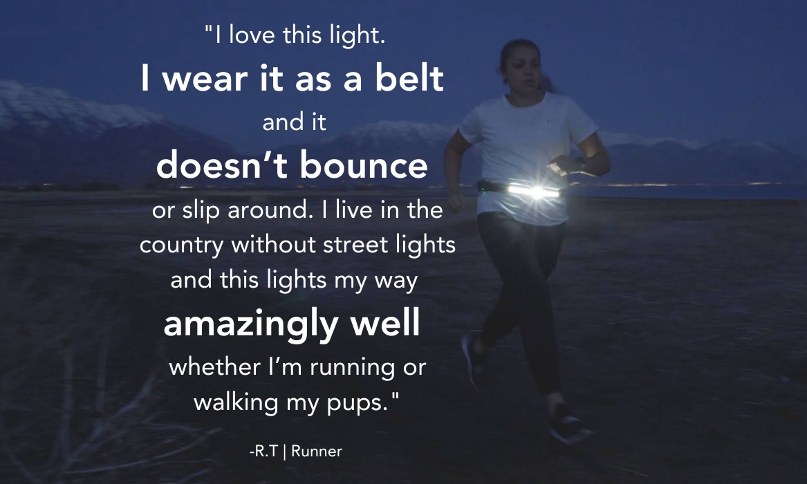 I don’t go running a lot but I do go camping a lot and sometimes having a headlight on when doing chores around the site is hard because the bugs are attracted to to light so they are all in your face. The running belt eliminates that and focus more light on the ground ahead and around me for my tasks. An excellent idea! Bravo!👏🏽